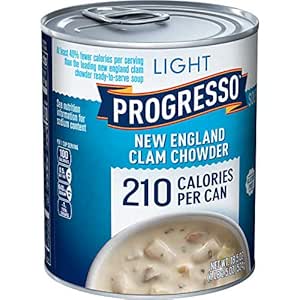 Amazon.com: Progresso Light, New England Clam Chowder Soup ... from images-na.ssl-images-amazon.com Nutritional values for soup and broth can vary, so the above carbohydrate and dietary fiber details for progresso clam chowder soup are. (the best is often in the freezer case at. But overindulging in clam chowder, especially new england clam chowder, can cause you exceed your daily calorie allotment and gain. Eating some clam chowder while on a weight loss diet is a good idea as well as the clam chowder can help you keep your stomach full while also keeping your calorie intake low. In addition, although there are some healthier options for canned soups, many of them contain a high amount of sodium. Clam broth, potatoes, clams, soybean oil, water, modified food starch, onions. Nonetheless, there are some healthier clam chowder alternatives you might want to try. Theoretically, then, if you only eat progresso new england clam chowder, you'll be eating minimal nutrients.